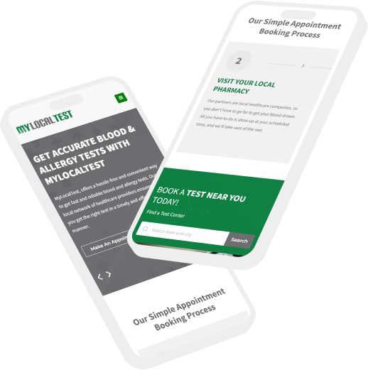 The visual design of MyLocalTest is clean, modern, and easy to navigate. We used a primary color palette of green and gray to convey a sense of trust, safety, and calmness, which are essential for an appointment booking platform. The use of white as the background color creates a minimalist and professional look, ensuring website's content is the main focus.