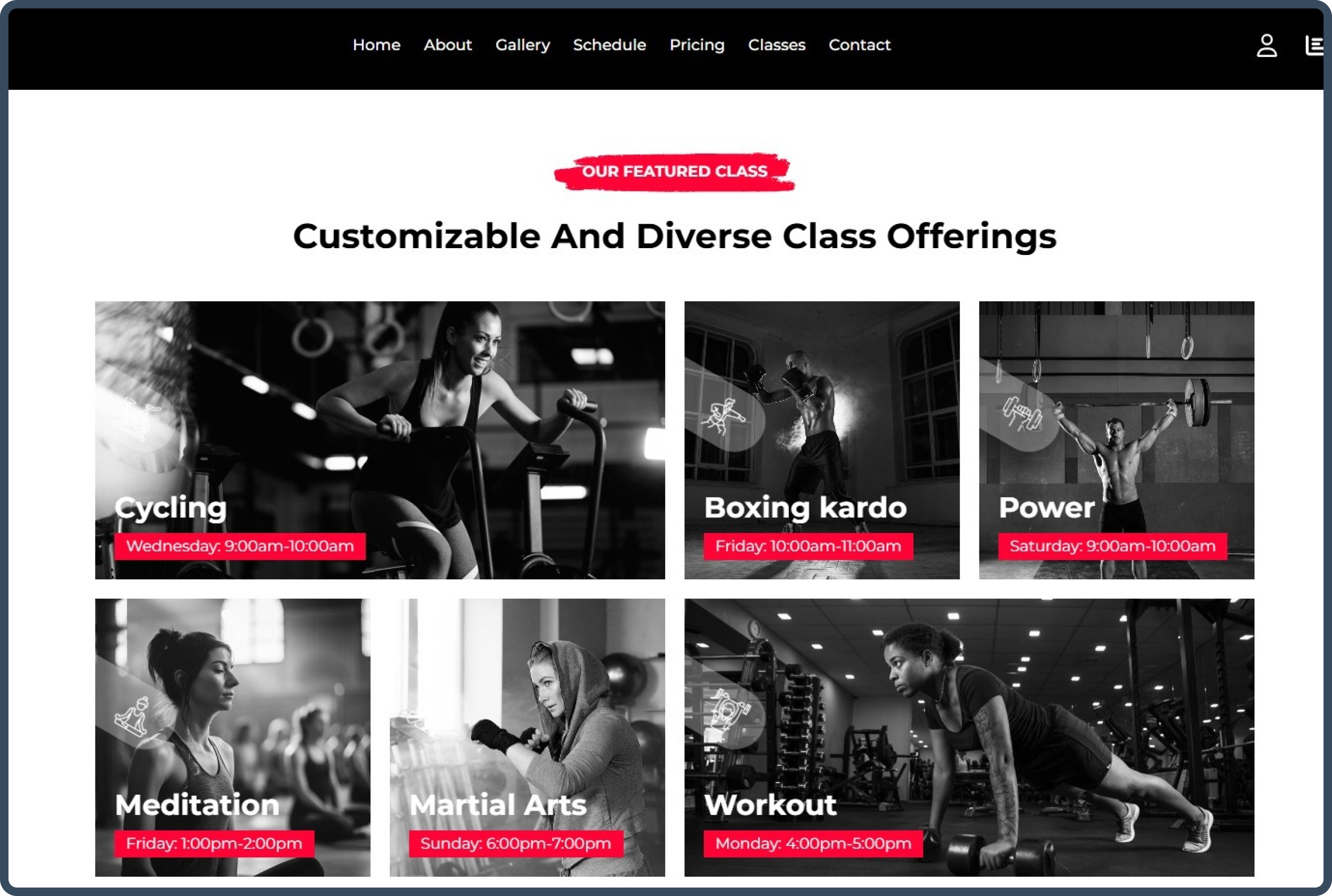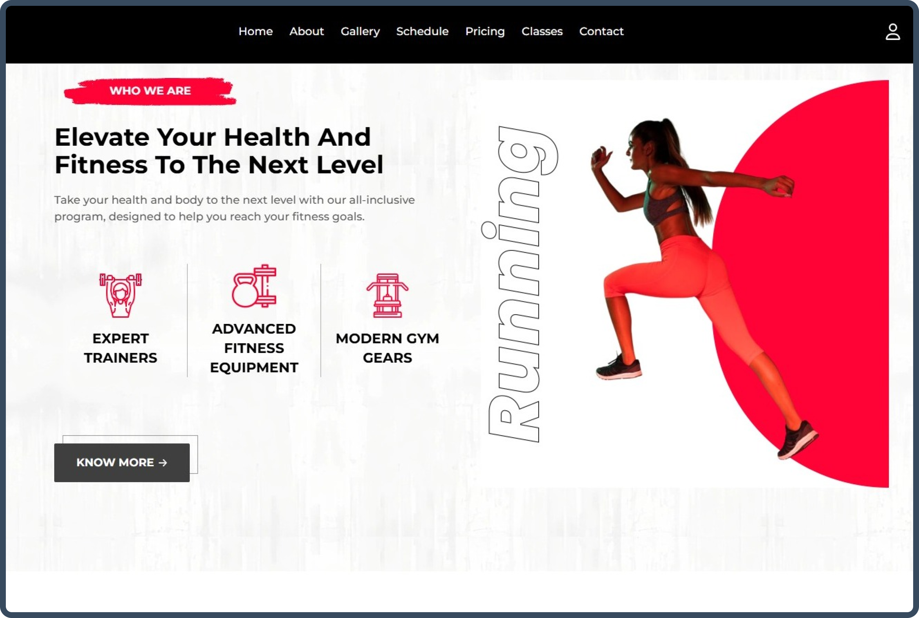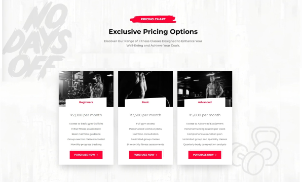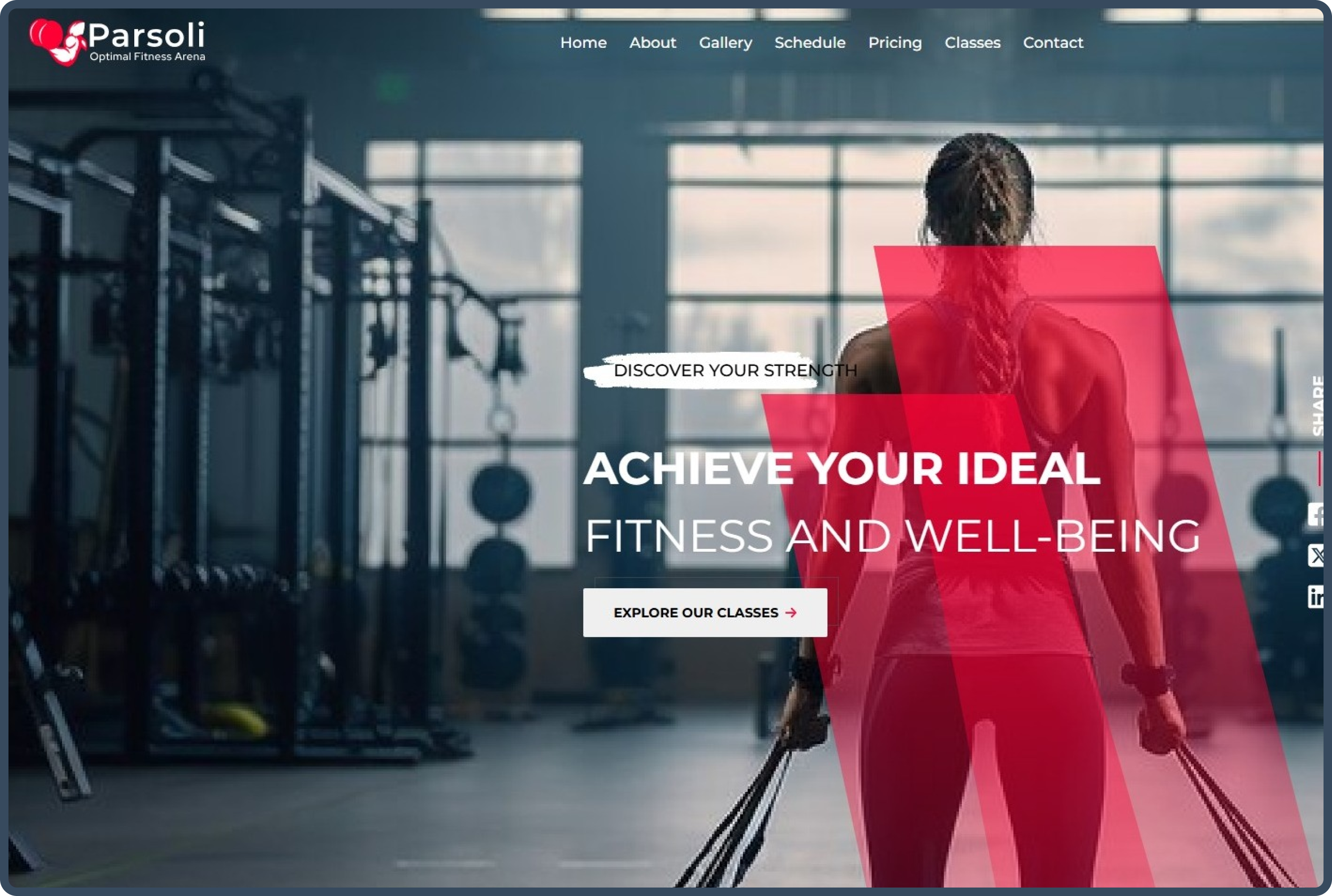 The Parsoli Gym website's color palette was selected to convey energy, strength, and modernity. The primary red adds vibrancy and impact, while the black provides a sleek contrast. Background colors of crisp white and deep gray create a balanced, professional look. Text colors in black and varying shades of gray ensure readability and a cohesive design throughout the site.