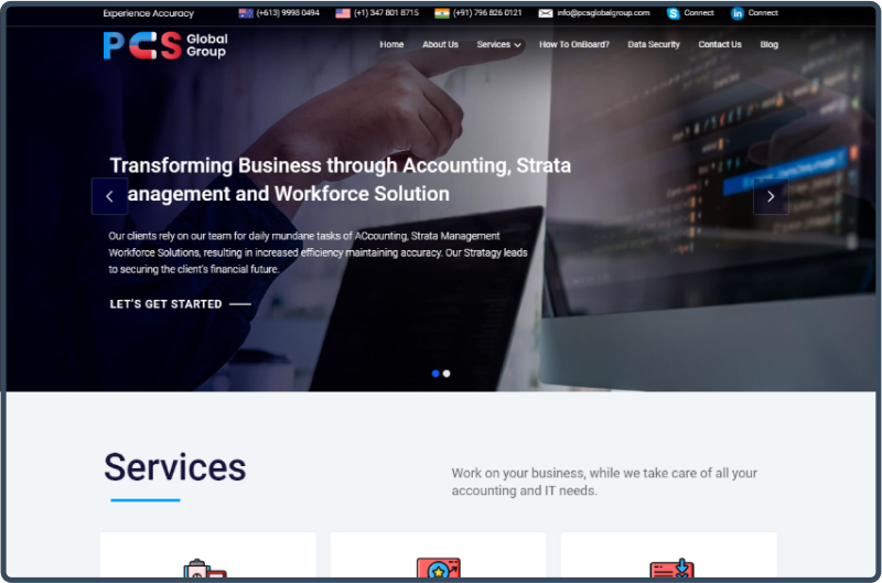 The visual design of the PCS Global Group website was carefully crafted to evoke a sense of professionalism, trust, and vibrancy. The chosen color palette revolves around the primary colors of blue and red, symbolizing reliability, expertise, and energy.